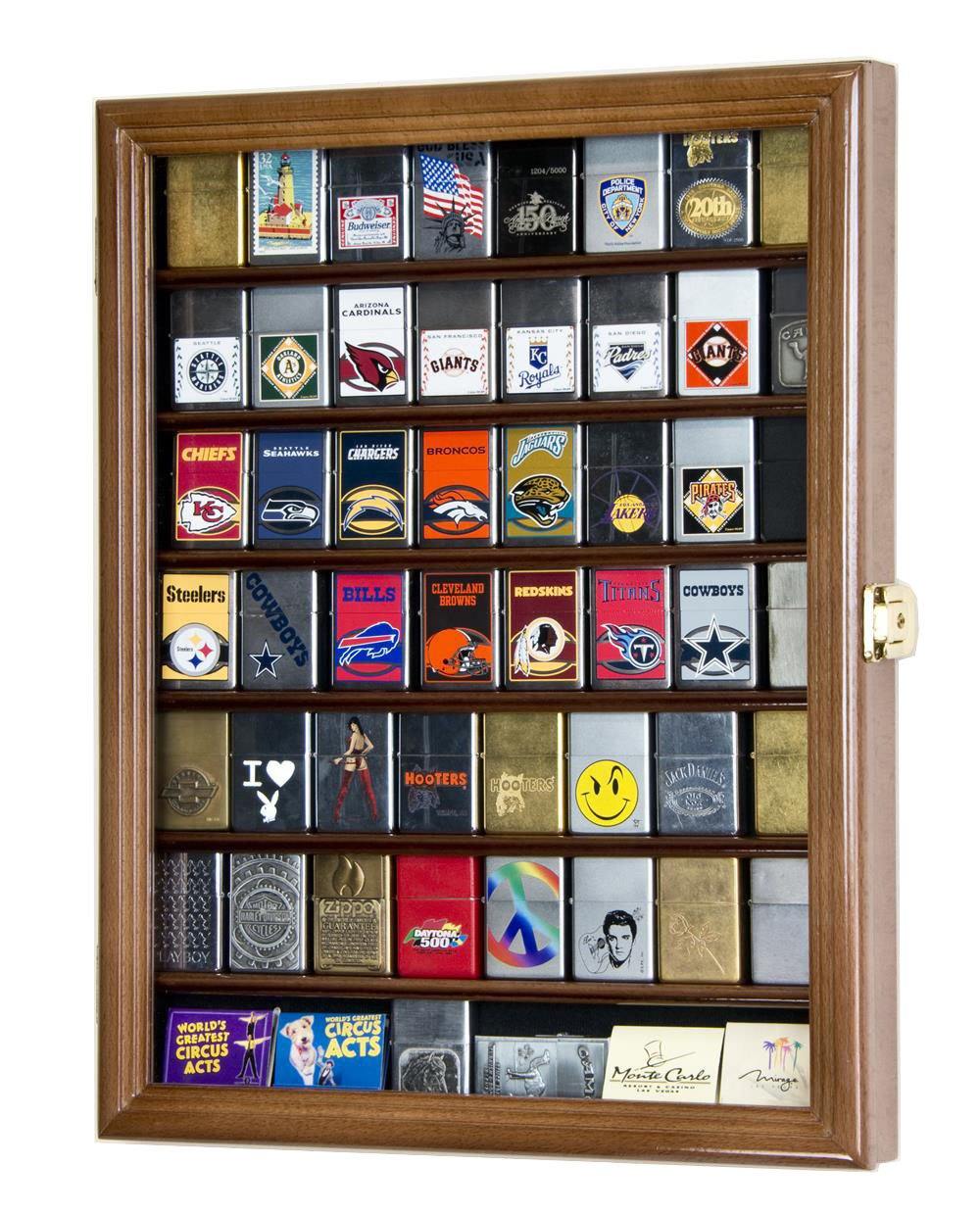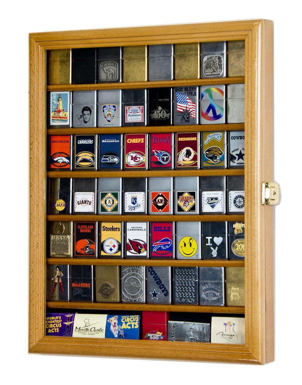 Display it in this beautiful 56 Lighter Display Case Cabinet, designed with a plexiglass door and 7 shelves to securely showcase up to 56 standard-sized lighters.