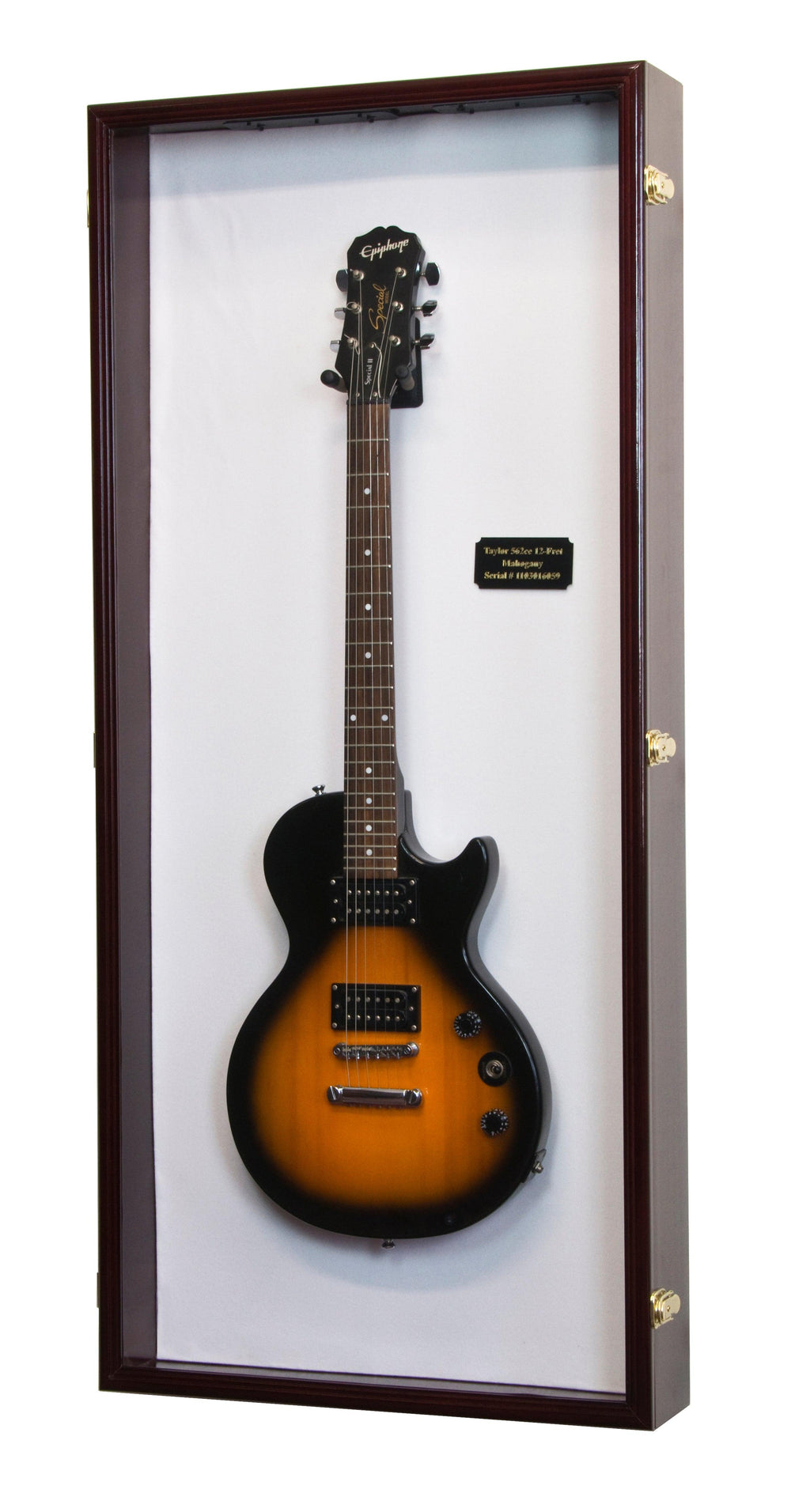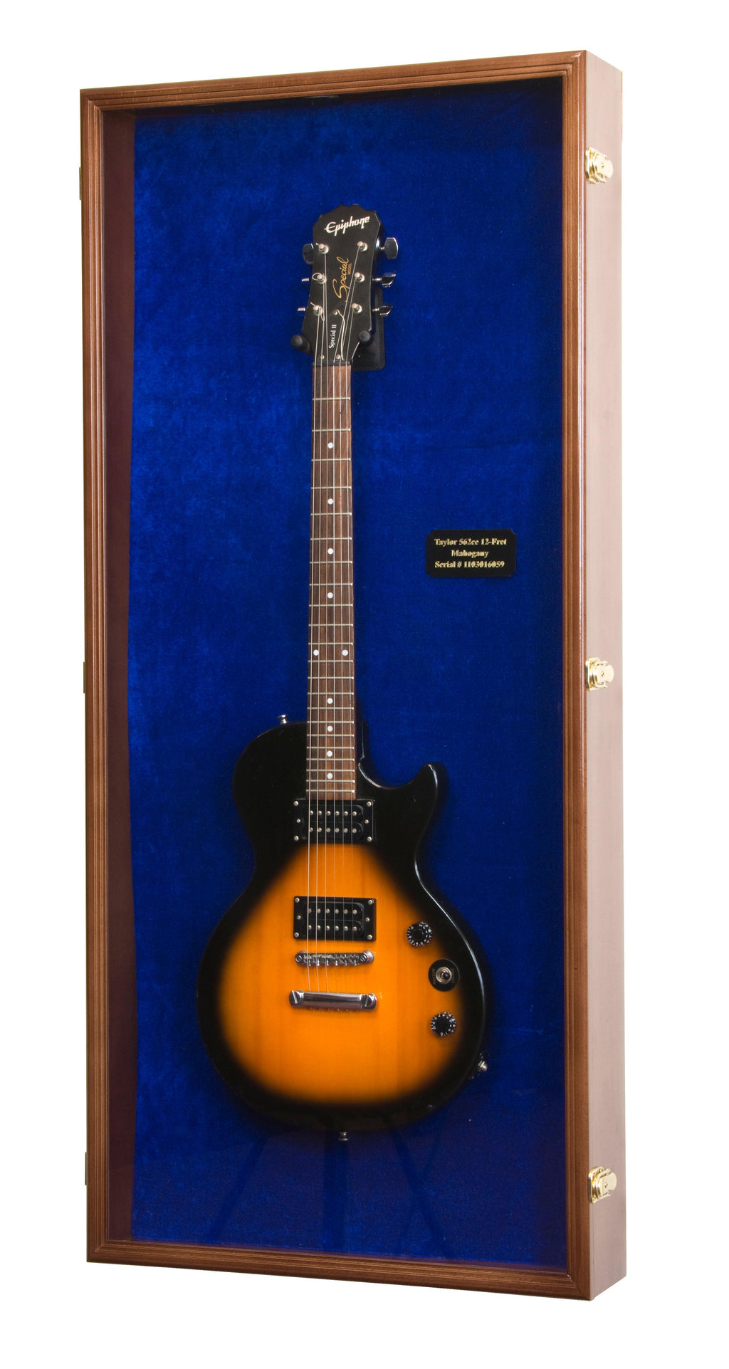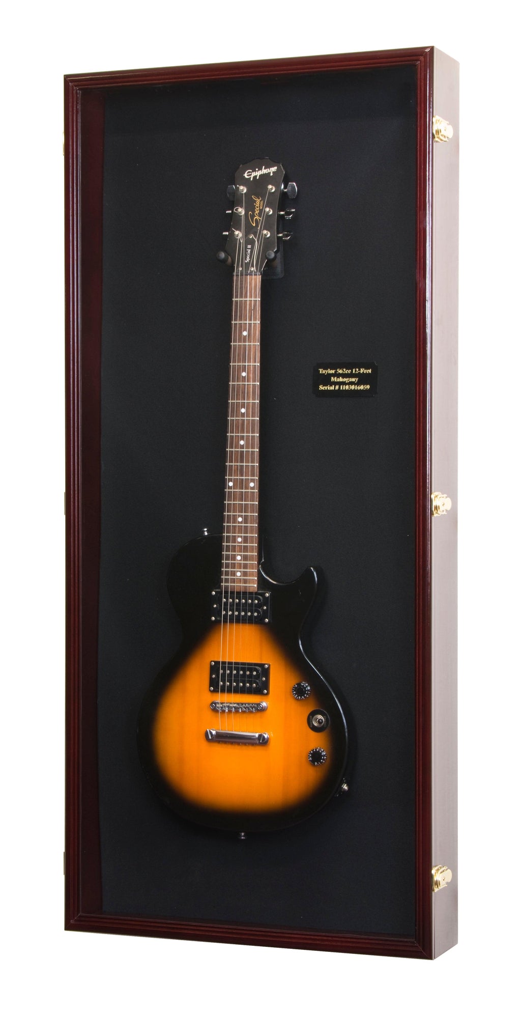 This guitar display case accommodates 1 electric or acoustic guitar. The larger width and height (compared to our standard Guitar Display Case) comfortably fits most electric guitar. Protected by our ultra-clear, specially-coated, UV-protection acrylic. The felt background adds a visual contrast for your guitar. A heavy-duty padded guitar mount is included in your package and installed at your discretion to fit a guitar of any length. Case comes fully assembled. Mounting hardware is shipped in the same package.