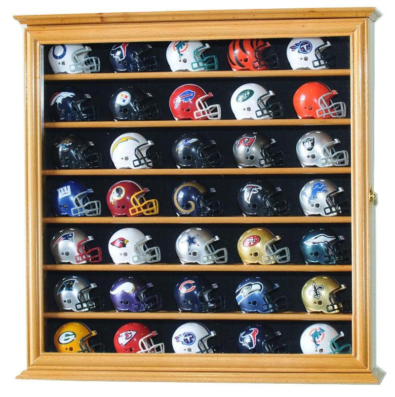 Display it in this beautiful Pocket Pro Mini Helmet Display Case Cabinet, designed with 6 beveled shelves and plexiglass door to securely showcase up to 35 mini helmets.